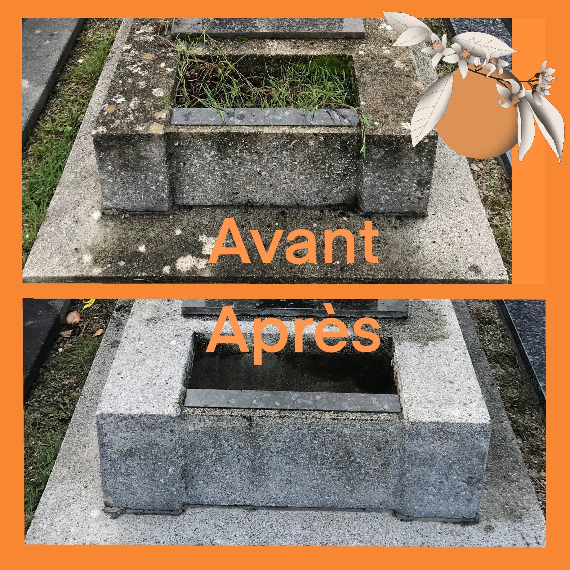 Découvrez mes services de nettoyage de sépulture, forfait nettoyage annuel et fleurissement. Les Orangers vous propose des solutions complètes pour l'entretien des tombes de vos proches.